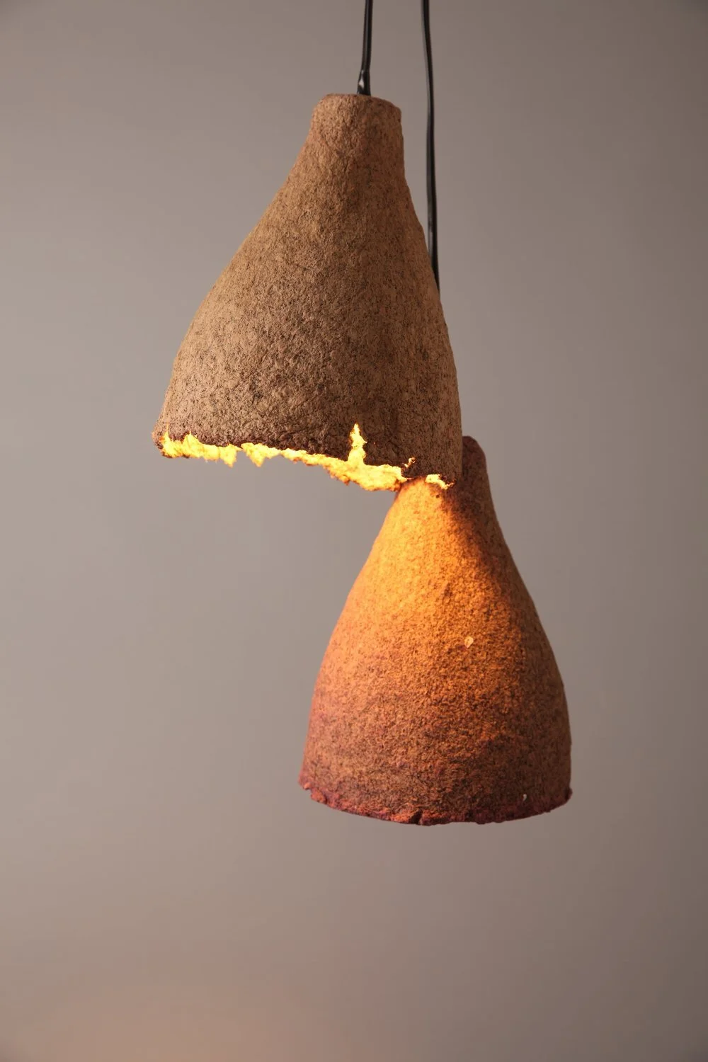 A seaweed and recycled paper composite material. This project aimed to change perspectives of the hugely abundant plant many regard as ocean waste. Brown algae contain alginates that act as a natural polymer, binding the algae and recycled paper together with a little water.